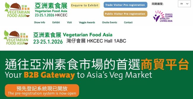 홍콩 최대 규모의 채식 및 친환경 생활 박람회인 베지테리언 푸드 아시아가 2026123일부터 25일까지 홍콩 컨벤션 전시 센터에서 12번째 행사를 개최한다.