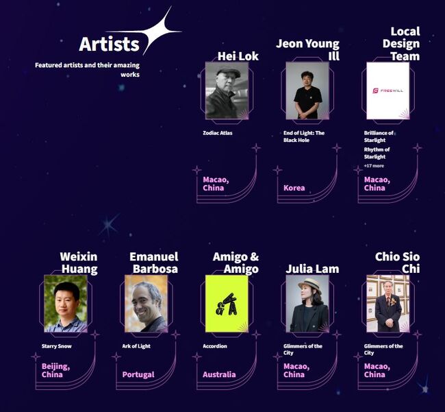 “마카오 라이트 업 2025”는 마카오, 중국 본토, 포르투갈, 한국, 호주, 미국 등 여러 국가의 팀들이 “빛의 풍경·지평선(Lightscape·Horizon)”을 주제로 28개의 창의적인 조명 작품을 선보인다.