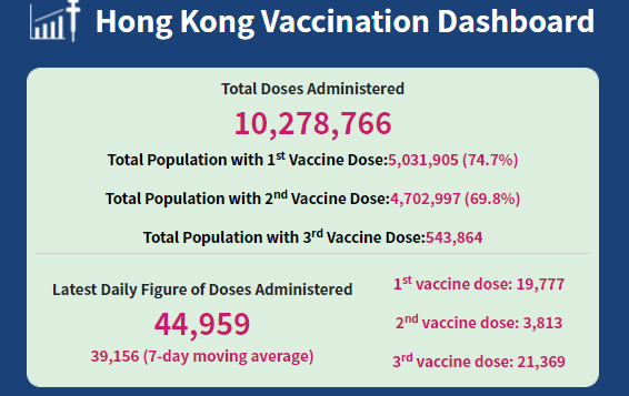 코로나 백신접종을 받으려는 사람들이 증가하자 정부가 시노박 백신 접종센터를 2곳에서 24곳을 증가되어 오는 21일부터 운영된다. 바이오앤택 접종센터 2곳, 카오롱통 교육서비스 센터와 카우롱베이 스포츠센터 등은 18일부터 추가되어 운영된다. 지역접종센터도 2곳이 증가되며 자세한 사항은 추후 발표될 예정이다. 당일접종을 위한 티켓은 오전 7시 45분부터 60세 이상에게 배부된다. 60세 이하 동반자들은 별도로 온라인 예약을 해야한다.