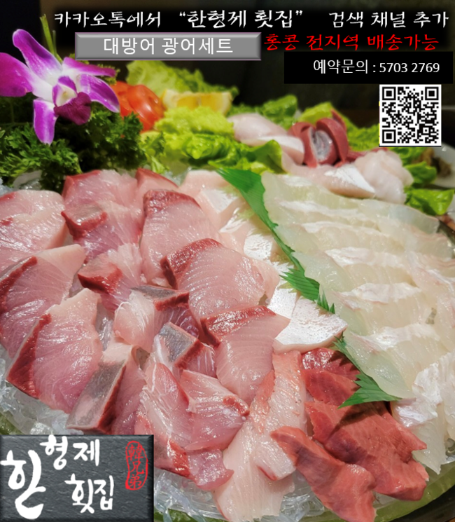 ▲한형제 횟집 : 카카오톡에서 한형제 횟집 검색 채널 추가/홍콩전지역 배송가능/ 청정 제주현지에서 100% 엄선한 신선한 광어와 대방어, 참돔 등의 횟감과 해산물들이 매주 대한항공편으로 입고됩니다. 예약문의 : 5703 2769/ C그룹으로 자정 12시까지 영업합니다.