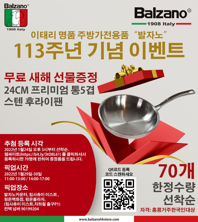 Balzano 113주년과 온라인 스토어 오픈기념으로 홍콩거주 한국인 대상으로