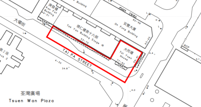 ▲봉쇄구역: Tai Yuen House, 77-83 Tai Pa Street, Tsuen Wan