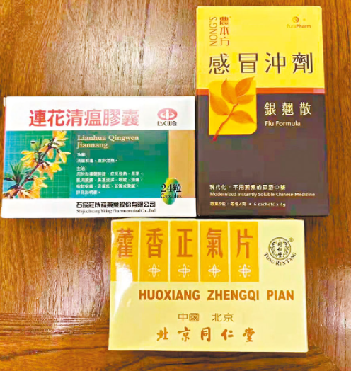 ▲ 주요 세 종류 치료 한약 : Lianqua Qingwen 캡슐은 발열, 근육 피로, 기침, 인후통, 가래 증상을 완화하며 Jinhua Qinggan 알약은 발열, 건조 및 인후통, 가벼운 기침, 콧물 증상을 완화한다. Huoxiang Zhengqi 는 두통, 설사, 구토 증상을 완화한다. 홍콩은 중국 한의약품에 크게 의존하고 있지만 코로나 환자가 많아지면서 수요가 급증했다. 문의: 2873-3100 /2871-3053 / 이메일 imc.info@cuhk.edu.hk