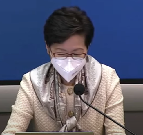 21일 오전, 캐리 람 장관이 존리 정무장관, 폴찬 재무장관과 함께 방역대책, 예방접종률에 관한 ‘중간점검“을 언론브리핑을 통해 발표하고 있다.