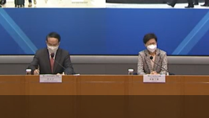 30일 오전, 캐리 람 장관이 재무금융서비스 크리스토퍼 허이 장관과 함께 언론브리핑 중이다.