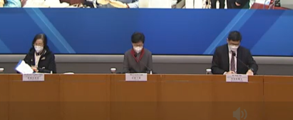 3일 오전, 캐리 람 장관이 소피아 찬 장관, 토니 고 병원국장과 함께 언론브리핑 중이다. 지난 3월 29일, 중국에서 의료전문가 7명이 네 번째로 홍콩에 도착해 지원하고 있다고 말했다. 이들은 모두 한의학 전문의로서 환자치료경험이 풍부하다고 소개했다. 노인층 접종률이 여전히 낮다고 지적하고 예방접종에 적극적으로 참여할 것을 요청하고 노인가족들도 여러 군데에 배치된 코로나 검사센터와 이동센터에서 검사받을 것을 촉구했다.