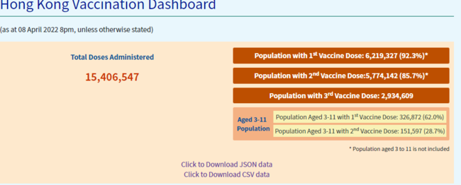영 장관은 “3-11세사이 어린이 예방접종률이 80-90%로 증가해 종일 대면수업이 재개되기를 희망한다.”고 덧붙였다. 3-111차접종률은 어제 8일 현재 62.8%, 2차접종률은 28.7%이다         2022년 4월 8일 오후 8시 현재, 코로나 예방접종률