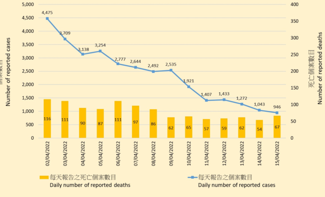 4월 15일 보건센터 코로나 일일감염 상황에 따르면 PCR 검사 471건으로 보고됐다. RAT 양성사례 475건을 포함해 총 946건이 보고됐다.