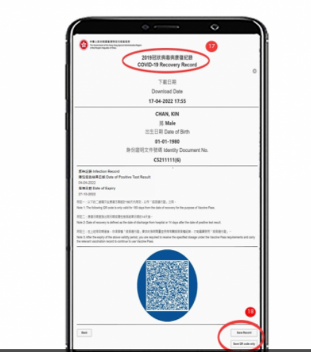 회복자들은 예방접종기록 대신 회복기록 QR코드로 백신패스 지정장소에 입장할 수 있다. QR코드는 6개월 이내까지만 유효하며 만료되면 빨간색으로 변한다.