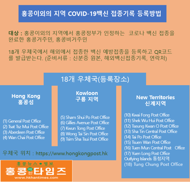 -대상 : 홍콩이외의 지역에서 홍콩정부가 인정하는 코로나 백신 접종을 완료한 홍콩거주민, 홍콩비거주민