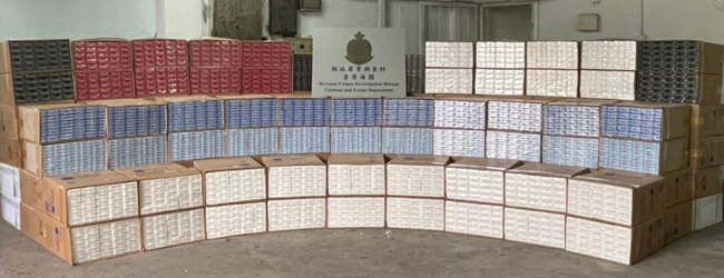 14세관이 불법담배 창고를 급습해 약 240만개(시장가치 hkd660)를 압수하고 27, 36세 남성을 체포했다과세조례에 따라 불법담배 판매소지 및 구매관련은 모두 범죄로 최고 hkd100징역 2년이 주어진다.