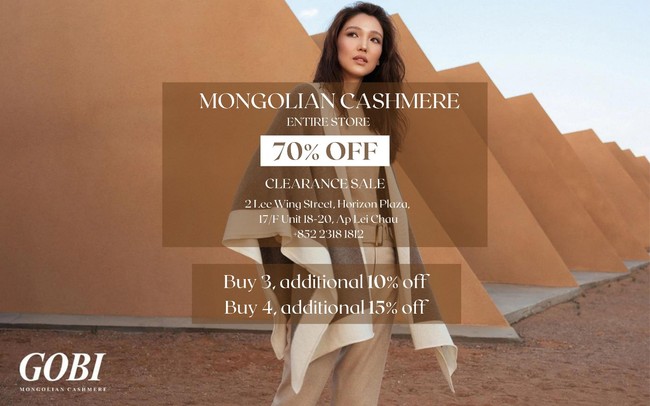■고비 캐시미어 선착순 판매!!! 세계 최고품질 몽골리아 고비가 홍콩매장 계약 만기로 제품을 초저가 판매를 시작합니다. 원시자연 캐시미어 제품을 70%이상의 할인가로 구입하시기 바랍니다. 문의 : 2318 1812