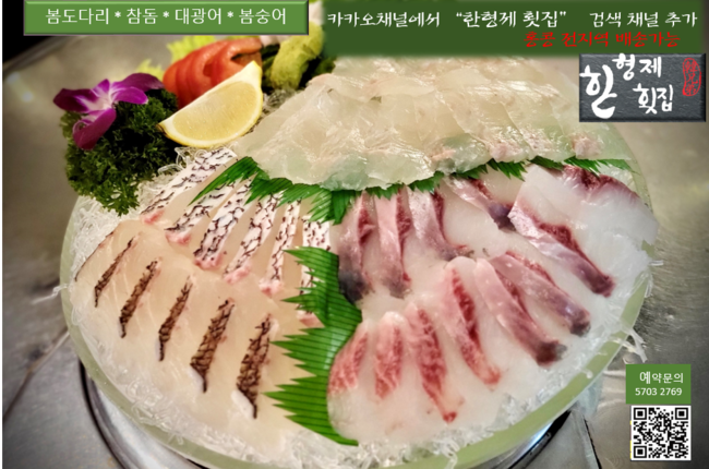 ▲한형제 횟집 : 카카오톡에서 한형제 횟집 검색 채널 추가/홍콩전지역 배송가능/ 청정 제주현지에서 100% 엄선한 신선한 광어와 참돔 봄도다리 봄숭어 등의 횟감과 해산물들이 매주 대한항공편으로 입고됩니다. 예약문의 : 5703 2769