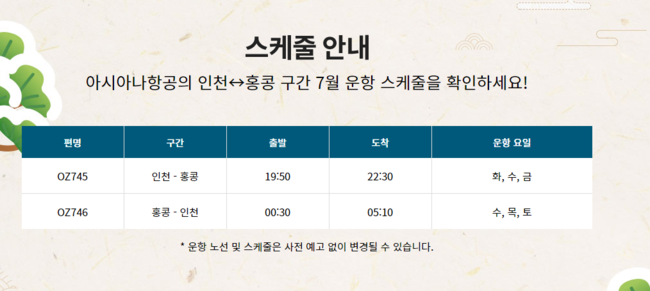 ■ 아시아나 항공 주 3회 증편 기념 이벤트 : https://m.flyasiana.com/C/HK/KO/event/detail/CM202205260001643464