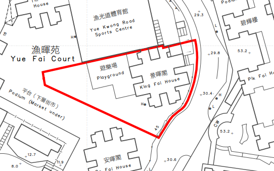 ▲봉쇄구역: King Fai House, Yue Fai Court, Aberdeen, excluding non-domestic units below podium level