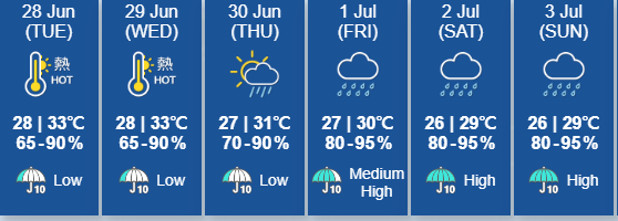 천문대에 따르면 오는 금요일부터 뇌우를 동반한 소나기가 내릴 것으로 예상된다. 71일은 25주년 기념행사가 개최된다열대성 저기압의 이동이 불확실하지만 강한 바람이 불것으로 예상된다한편천문대는 올해 저기압이나 태풍이 약 5-8개가 발생할 것으로 예측했다