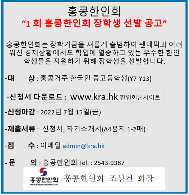 ■ 홍콩한타임즈 온라인 광고후원 문의 : 비대면 시대 귀사의 마케팅 부서 “홍콩한타임즈” 문의 : 9730-1755 / 카톡ID 242500ryune / 이메일 hkkrtimes@gmail.com