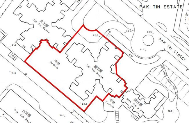 ▲ Lai Tin House, Pak Tin Estate, Sham Shui Po, excluding non-domestic units on ground floor