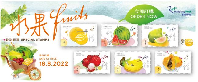 홍콩우체국이 과일을 주제로하는 특별우표 6종세트를 발행한다. 오늘부터 모든 우체국과 온라인에서 선주문 할 수 있다. 우표발행은 8월 11일부터이다.