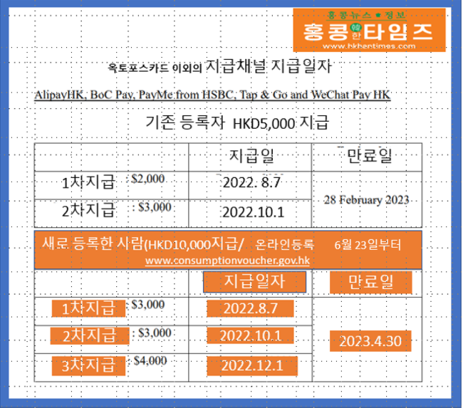 ▲ Alipay, BocPay, PayMe, Tap&G, WeChat 지급일자