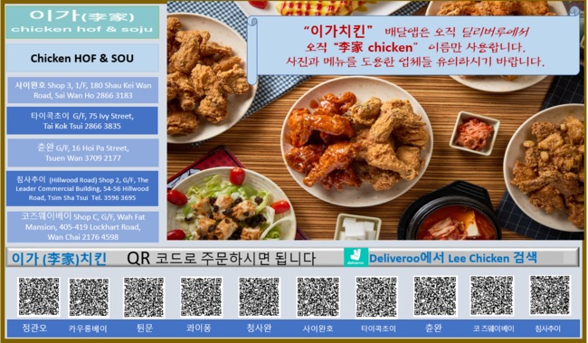 ▲이가치킨 배달앱은 오직 딜리버루에서 오직 "李家 Chicken" 이름만 사용합니다. 사진과 메뉴를 도용한 업체들 유의하시기 바랍니다.