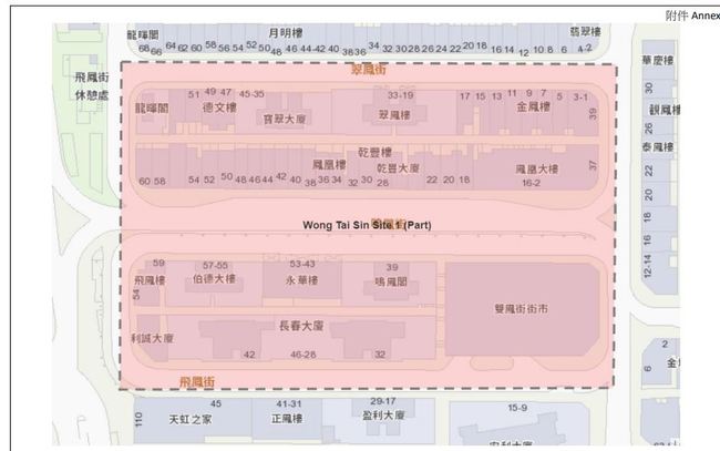 ▲ 웡타이신 Wong Tai Sin District – Pang Ching Court and residential premises around Tsui Fung Street and Fei Fung Street (See Annex)
