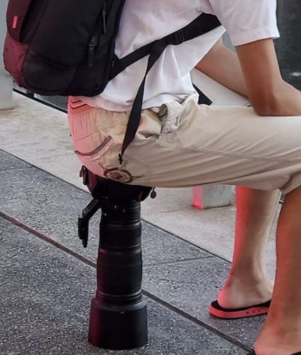 ■ 카메라 망원렌즈를 의자로 사용한 남성, 네티즌 주목받아 침사추이 부두에서 커다란 카메라 망원렌즈를 의자로 사용한 남성의 사진이 온라인에 게시되어 화제가 되었다.