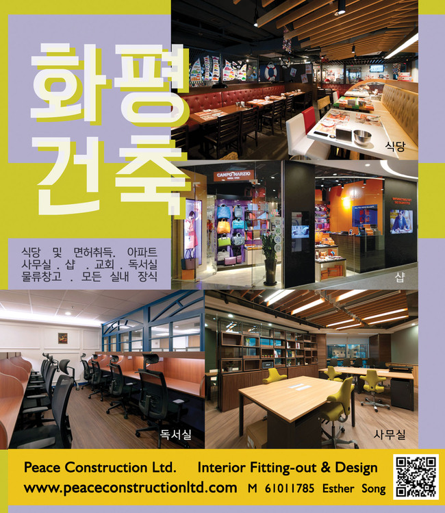 ▲ 화평건축 : 식당 및 면허취득, 아파트, 사무실, 샵, 교회, 독서실, 물류창고, 모든 실내장식 문의; : 6101-1785 Designer Esther
