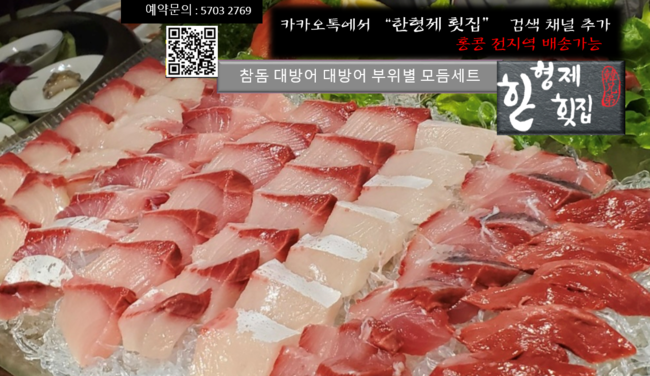 ▲한형제 횟집 : 카카오톡에서 한형제 횟집 검색 채널 추가/홍콩전지역 배송가능/ 청정 제주현지에서 100% 엄선한 신선한 광어와 참돔 봄도다리 봄숭어 등의 횟감과 해산물들이 매주 대한항공편으로 입고됩니다. 예약문의 : 5703 2769