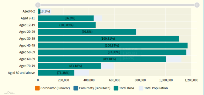 한편, 어제 20일 현재, 2세 미만 코로나 접종률은 18.1%, 3세-11세 사이 어린이 접종률은 86.8%로 기록되었다.