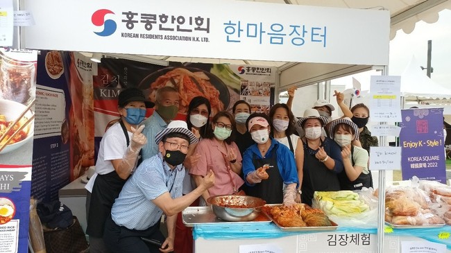 홍콩한인회(회장 조성건)는 지난 1022, 23일 서구룡 문화센터에서 진행된 한국문화원 주최하는 K-광장 2022 행사에서 부스 3개를 할당받아 진행하였다. Kowin의 회원 12명이 21일 저녁 맥선(대표 김미리 전전임 여성회장)이 무상대여해준 central kitchen에서 7시간에 걸쳐 담은 김장 320포기를 행사장에서 장자회원 77가정에 배송하였고 나머지는 인기리에 완판하여 전액을 한인회 장학기금으로 기부하였다현지인들에게 잘 알려진 김치의 훌륭한 맛과 건강을 제공하는 뜻깊은 행사였다.