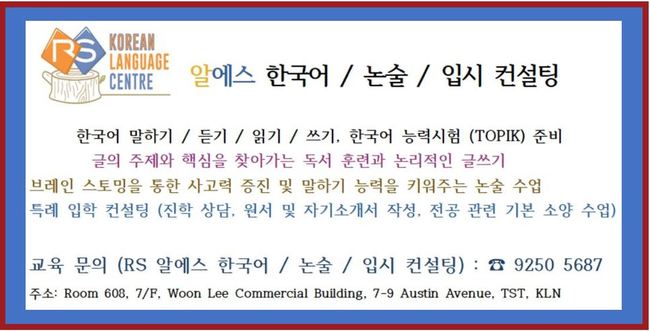 ■ 알에스 한국어 / 논술 / 입시 컨설팅 : 한국어와 논술, 그리고 한국 대학 입시를 고민할 때 가장 먼저 생각나는 곳, 교육 문의 : ☎ 9250 5687