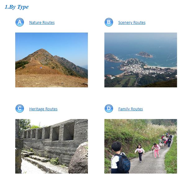 -"Wu Kau Tang - Luk Keng" 및 "Shing Mun Reservoir - Pai Tau Village" 등이 포함되었다. ▲ 자세한 사항 및 코스정보 : https://www.lcsd.gov.hk/en/healthy/hiking/index.html