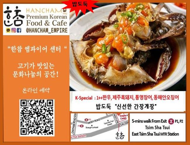 ▲ 한참 엠파이어 : 고기와 게장이 맛있는 문화나눔의 한식당, 동침사츄이 리갈구룡호텔 맞은편, 예약번호 2511 6316 (침사추이 P1, P2 출구)