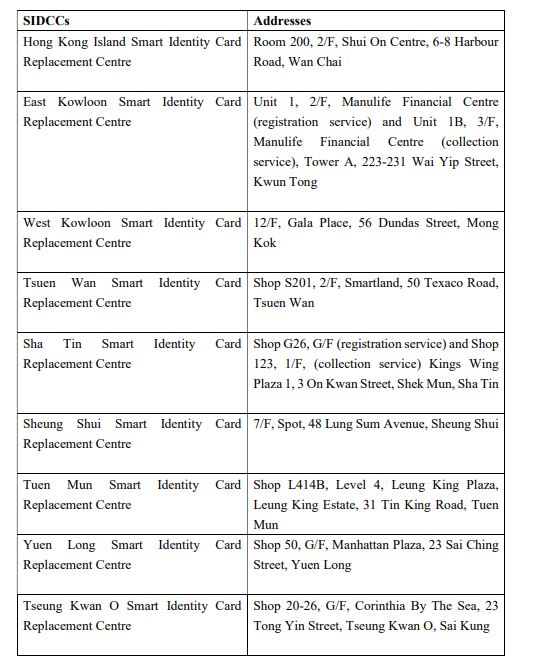25일, 이민국은 “홍콩거주민은 스마트아이디카드 교체센터에서 신청할 수 있다.”고 말하고