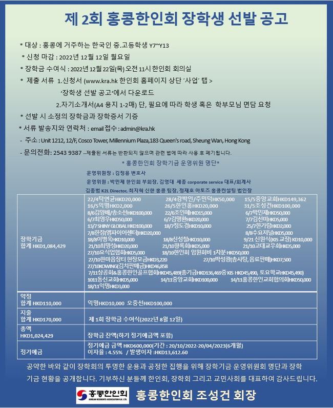 ■ 각종 보험, MPF 문의 : Korean Care Desk : tel. : 6279-0001) MPF 관련 & 각종보험 무료상담, 부담없이 문의하실 수 있습니다.