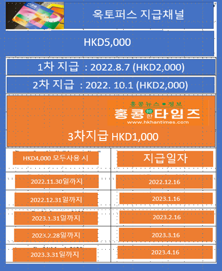 새로운 영주권 취득으로 나중에 신청한 새로운 등록자 대상 3차 hkd3,000 지급은 오늘 12월 1일 지급된다