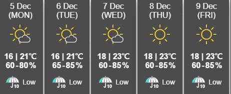 ■ 이번 주 날씨북동쪽에서 불어오는 바람으로 아침저녁으로는 쌀쌀하겠으나 대체적으로 맑은 날씨가 이어지겠다. 오늘은 최저 16도, 최고 21도이다