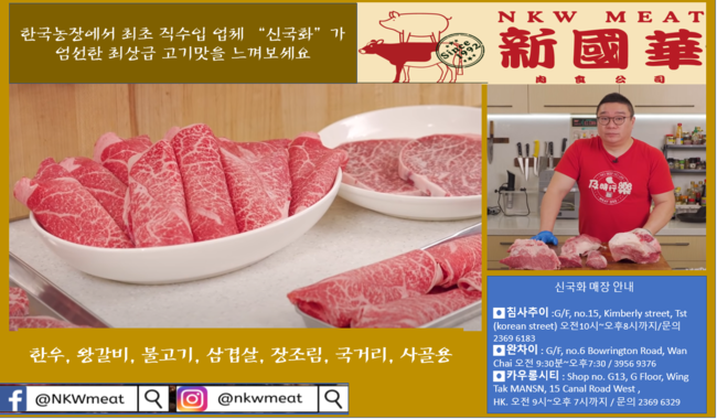▲신국화(NEW KWOK WHA MEAT) 한국농장 최초 직수입업체, 한우, 한돈, 삽겹살, 왕갈비 비, 국거리
