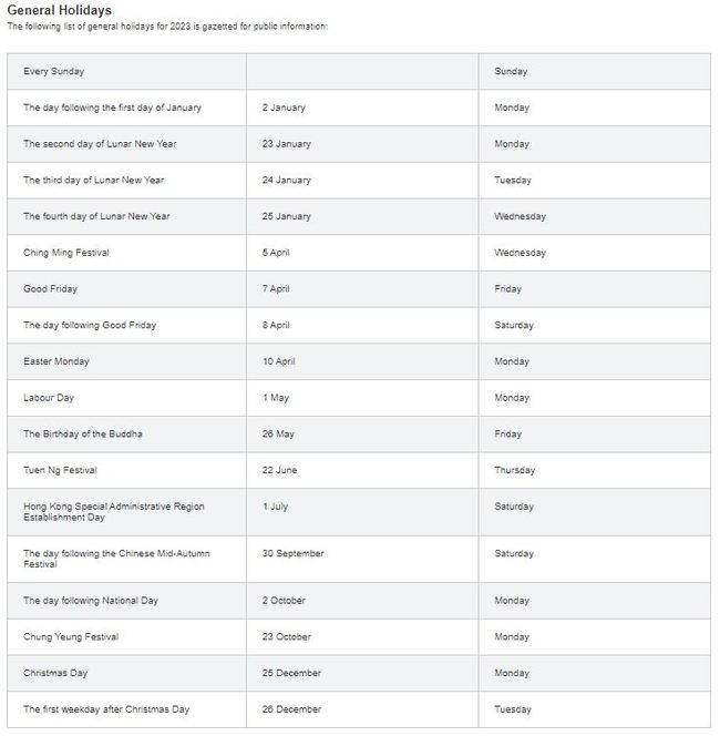 ■ 2023년 홍콩 법정공휴일