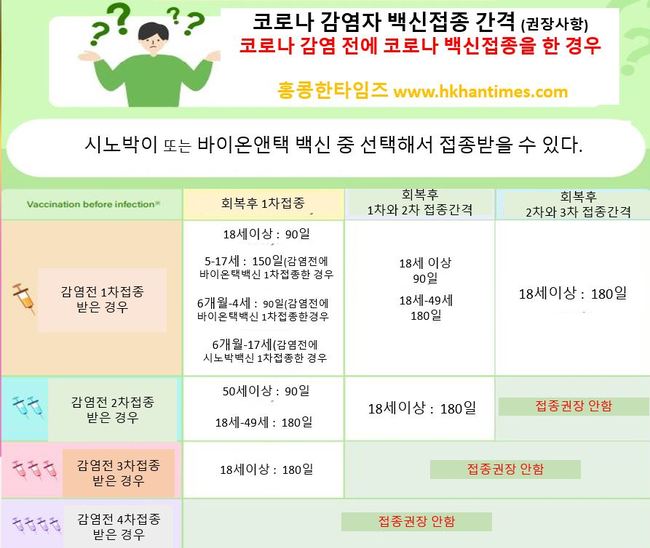 ▲감염전 백신접종한 경우, 접종간격 권장사항