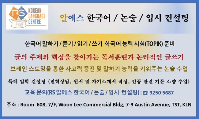 ■ 알에스 한국어 / 논술 / 입시 컨설팅 : 한국어와 논술, 그리고 한국 대학 입시를 고민할 때 가장 먼저 생각나는 곳, 교육 문의 : ☎ 9250 5687
