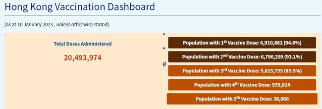 ▲ 2023년 1월 10일 현재 홍콩 백신접종률 현황