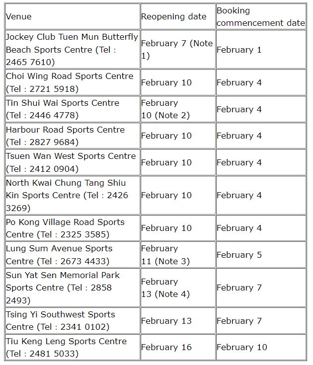 19일 레져문화부는 잠정적으로 폐쇄되었던 스포츠 센터 11곳을 오는 2월 7일부터 단계적으로 재개장 한다고 밝혔다. 스포츠시설을 이용하고자 하는 사람은 해당 장소에서 예약할 수 있다.