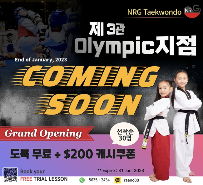 ▲NRG 태권도 : 홍함점 6313 2872/ 마온산점 9287 9900/ 올림픽점 9573 0577. 카톡ID raeno88
