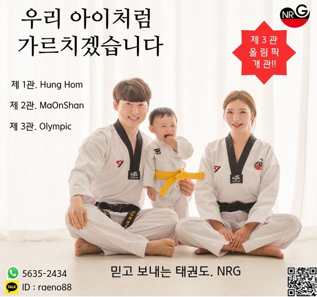 ▲NRG 태권도 : 홍함점 6313 2872/ 마온산점 9287 9900/ 올림픽점 9573 0577. 카톡ID raeno88