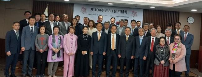 삼일절 기념식은 3.1 독립 선언서 낭독, 순국선열 및 호국명령에 대한 묵념, 기념사 대독, 만세삼창 순으로 진행되었다. 만세삼창은 최영우 한인회 고문이 선창했다.