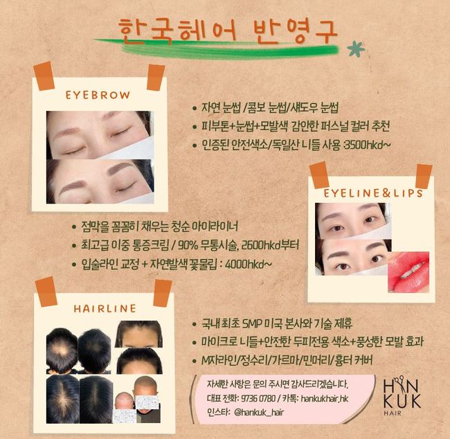 ▲ 한국헤어 : (커트, 염색, 펌 등) 문의 : 5122 4780 / 2147 1060
