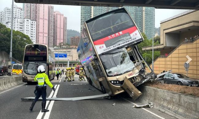 오늘 오전 9시, 칭청 지역에서 춘완쪽으로 향하던 KMB 버스가 기울어지면서 도로장벽에 부딪혔다. 버스가 거의 전복될 뻔한 사고로 승객 30명이 다치고 운전자는 의식을 잃었다. 부상자 모두 병원으로 이송되었다.