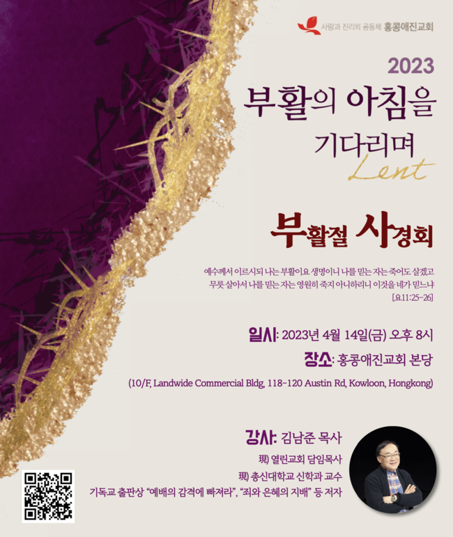 ■ 애진교회 "부활절 사경회" 4월 14일(금) 오후 8시